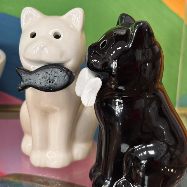 Estos salpimenteros de cerámica con forma de gato sosteniendo un pez son el toque perfecto para dar personalidad y alegría a tu mesa. Disponibles en blanco y negro, combinan estilo minimalista con un toque de humor encantador.