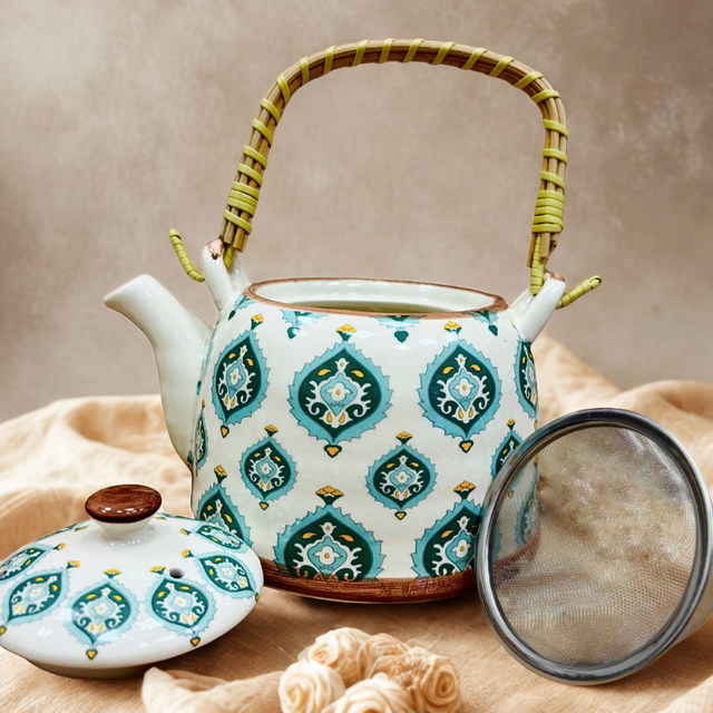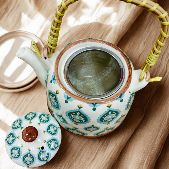 Fabricada en cerámica esmaltada, mantiene la temperatura ideal del té por más tiempo, realzando el sabor y aroma de tus infusiones favoritas. El filtro metálico extraíble permite infusionar fácilmente hojas, flores o mezclas naturales, para disfrutar de una experiencia pura y consciente.