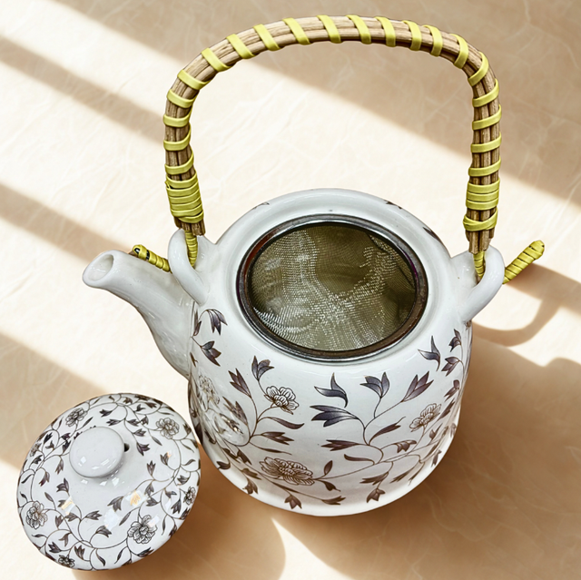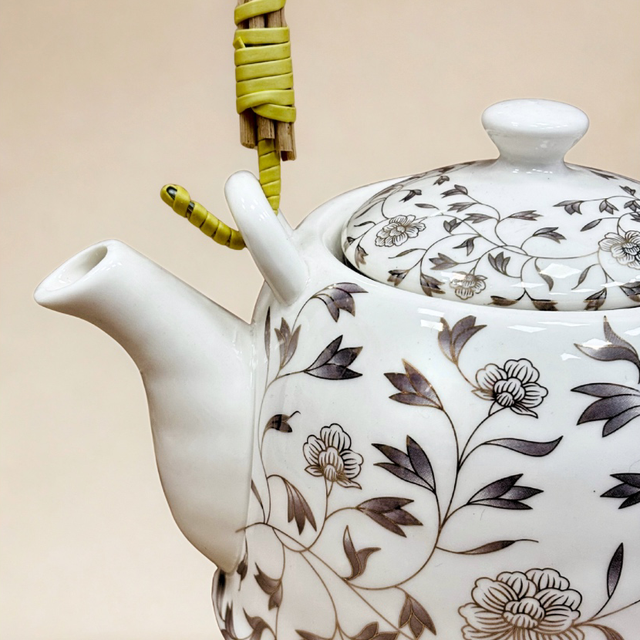 Deja que la armonía del té te acompañe con esta tetera artesanal de cerámica blanca y negra con asa de bambú trenzado, una pieza que une tradición, belleza y serenidad. Su diseño floral pintado a mano evoca la pureza y el equilibrio, convirtiendo cada preparación de té en un ritual de presencia y bienestar.